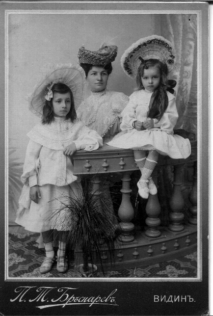 Руцка Цони Гергева-Радкова с двете си дъщери Пенка (вляво) и Надежда (вдясно) - 1905 г.